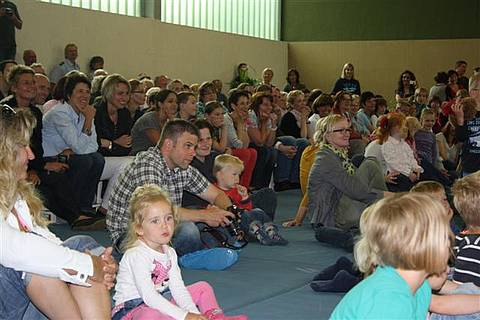 Nach dem Gottesdienst konnte die Einschulungsfeier bei strahlendem Sonnenschein auf dem Schulhof stattfinden. Hier hießen alle Kinder der St. Georg-Schule ihre neuen Mitschüler mit einem Begrüßungslied, einem Rap und vor allem mit der Geschichte vom Löwen, der nicht schreiben konnte, willkommen. Nach einem gemeinsamen Tanz der Schulneulinge mit ihren Paten erlebten die Erstklässler dann mit ihrer Klassenlehrerin Frau Everding ihre erste gemeinsame Schulstunde. In der Zwischenzeit wurde die Eltern und Gäste durch den Förderverein bestens mit Kaffe und Schnittchen versorgt.