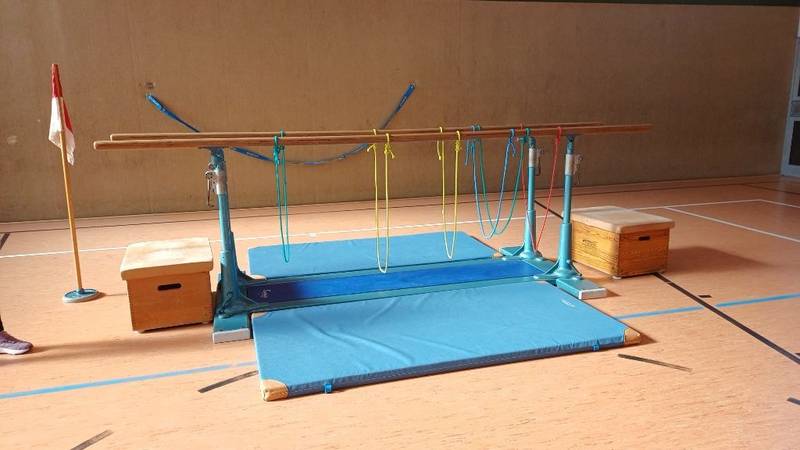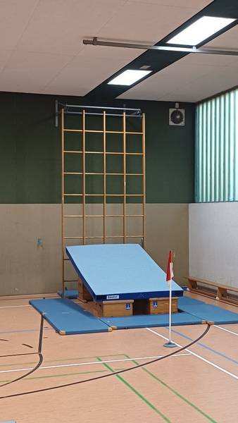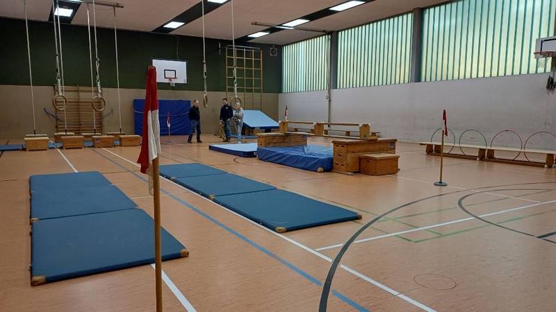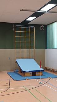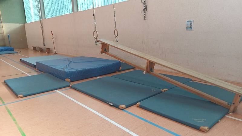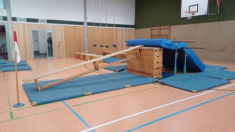 Jeden Donnerstag wird vor Schulbeginn mit Hilfe engagierter Eltern eine Bewegungslandschaft in der Turnhalle aufgebaut. Der Stundenplan ist so gestaltet, dass alle Klassen an diesem Tag Sportunterricht haben und das Angebot nutzen können.