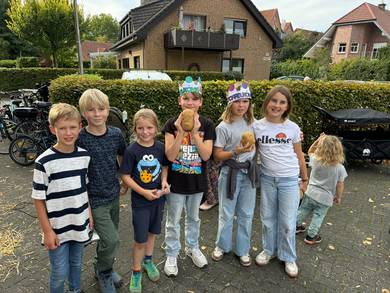 Auf dem Acker von Christoph Daldrup durften die Kinder selbst ernten- und jede soie jeder die dieckste gefundene Knolle behalten. Nebenbei gab es vom Landwirt interessante Informationen rund um die Kartoffel und ihren Anbau. Zurück auf dem Schulhof sagen die Kinder einen Kartoffelsong. Anschließend wurden die Funde gewogen. Die schwerste Kartoffel brachte stolze 709 Gramm auf die Waage. Bei sonnigem Wetter verbrachten alle gemeinsam ein wunderbares Fest.