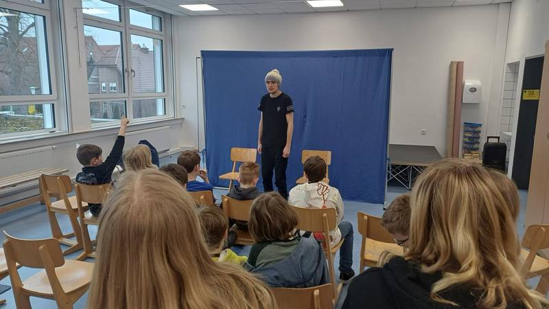 Im Rahmen der Präventionsarbeit nahm die vierte Klasse am Theaterprojekt „Mein Körper gehört mir!“ der Theaterwerkstatt Osnabrück teil. In mehreren kurzen Spielszenen wurden alltagsnahe Situationen dargestellt, in denen es um persönliche Grenzen und das eigene Körpergefühl ging.