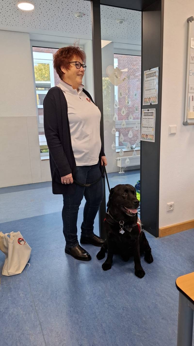 Heute hatten wir in allen Klassen Besuch von einem Therapiebegleithund. Frau Buffarello hat sich und ihren Hund Dante allen Kindern kurz vorgestellt und Kinderfragen beantwortet.