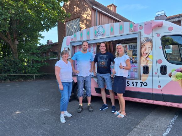 Ab 9.00 Uhr kam der Eiswagen auf den Schulfhof. Jedes Kind bekam eine Kugel Eis! Dabei konnte zwischen 12 Sorten, mit und ohne Streusel, im Hörnchen oder im Becher gewählt werden.
